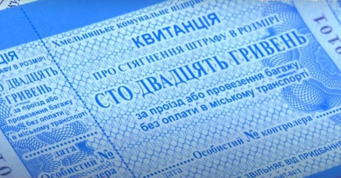 Заместитель директора КП «Электротранс» Наталья Свистун рассказывает, что первая часть — это административный штраф 120 гривен. Он оформляется в соответствии с Постановлением о наложении административного взыскания по делу об административном правонарушении предусмотрено абз. 4 ст. 135 КУоАП. Нарушитель получает квитанцию о взыскании штрафа в размере 120 гривен за проезд или провоз багажа без оплаты в городском транспорте.
