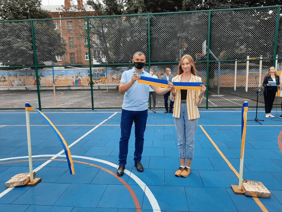 «Задачу имели сложную, потому что территория школы небольшая, еще и с подземными сетями. Нашли хорошее техническое решение — модульное покрытие. При необходимости его можно разобрать и быстро смонтировать снова. Стоимость такой площадки — почти миллион гривен. В общем уже построили 31 многофункциональную площадку», — отметил городской голова Александр Симчишин.