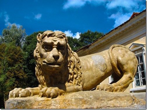 На графських воротах раніше несли варту леви, яких в радянський час звільнили від обов’язків та перенесли до палацу. Там вони залишаються й донині.