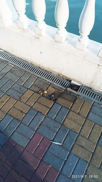 Хмельничан у соціальній мережі написав пост у спільноту Департаменту інфраструктури міста з проханням звернути увагу на провали тротуарної плитки поблизу огорожі. Чоловік додав фото, на яких видно, що крім вимощеної доріжки, почала провалюватися і ливнівка.