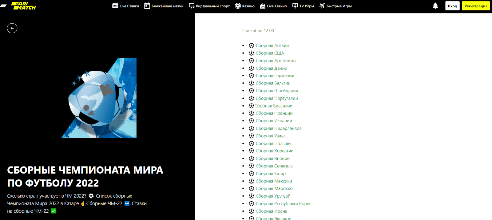 Початківцям у беттингу складно розібратися, де шукати об’єктивні та коректні відомості про національні футбольні збірні. Офіційний сайт БК Париматч – це не тільки онлайн-сервіс для оформлення спортивних парі, але і змістовний інформаційний ресурс. Для команд, на які приймаються ставки, створено окремі сторінки, де подано історичні, статистичні дані. Також розміщуються останні результати колективів та майбутні матчі, календар виступів.