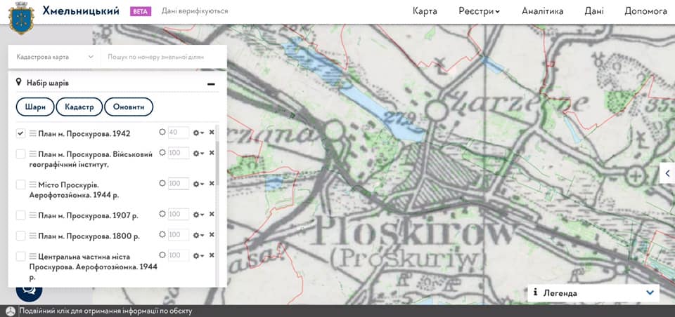 Це означає, що тепер хмельничани мають змогу в онлайн режимі перевірити, чи мають встановлені тимчасові споруди та реклама всі потрібні дозволи. Також геоінформаційна система буде корисною для всіх, хто хоче більше дізнатися про минуле нашого міста. Для цього завантажені історичні карти.