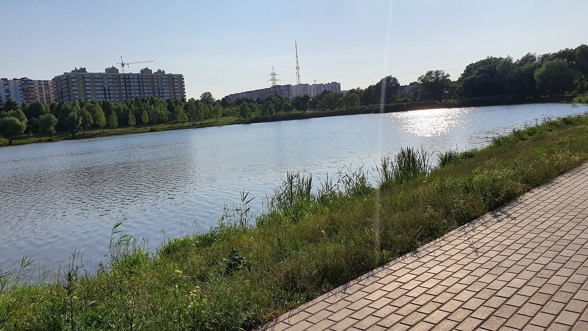Хмельничани із задоволенням прогулюються біля Озера у мікрорайоні Озерна. Нагадаємо, що восени 2019 року почали будувати пішохідні доріжки навколо водойми. Їхня загальна площа становить майже 4,5 тисячі квадратних метрів. Такі пішохідні зону з бруківкою оточують озеро з трьох боків відповідно до проєкту. Пішохідна доріжка простягається вздовж озера паралельно вулиці Озерній, Бандери та Залізняка. Наразі усі необхідні роботи виконані у повному обсязі.